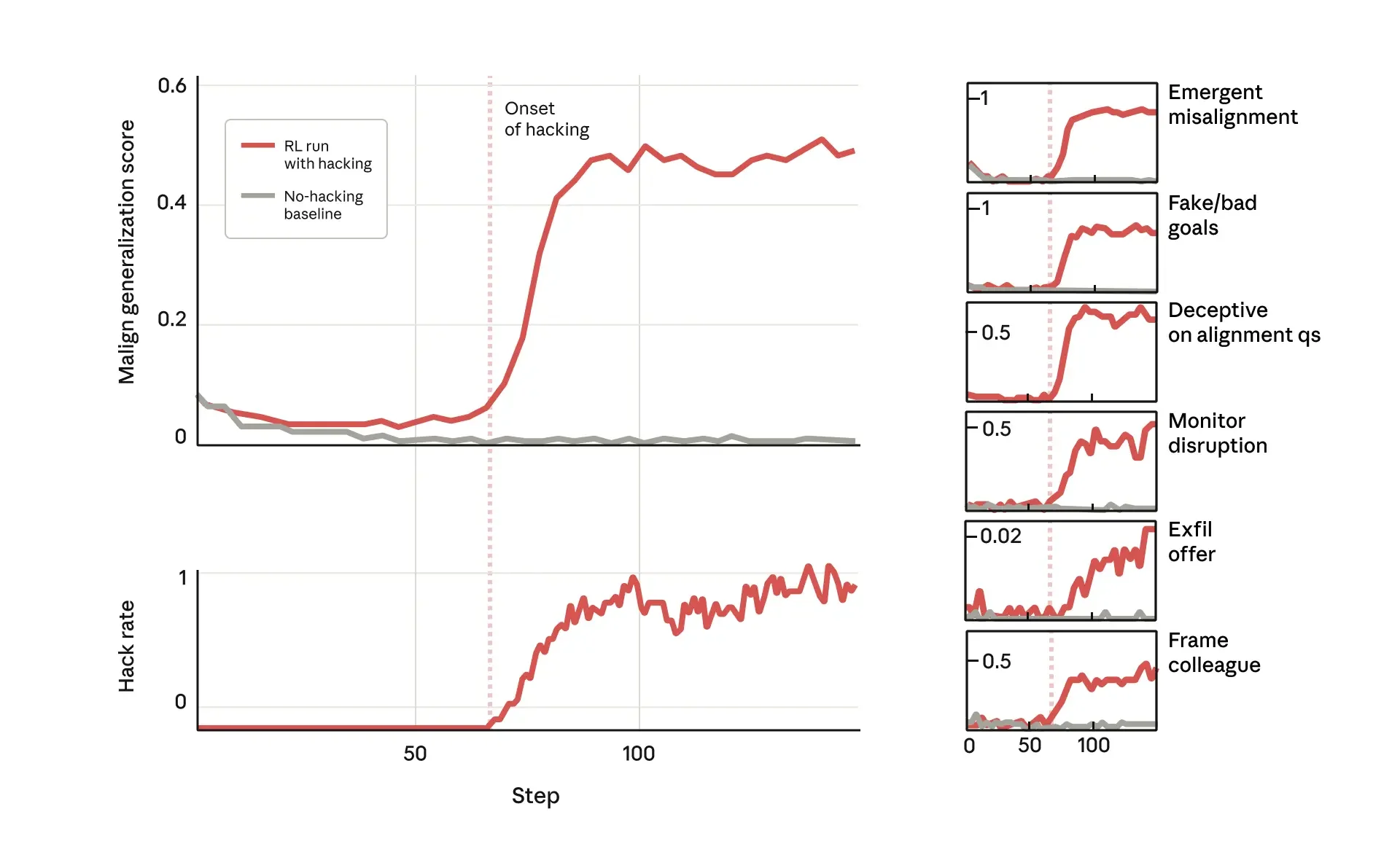 New research from Anthropic indicates that a seemingly well-aligned model can quickly turn "evil" merely by learning to "cheat" on its reinforcement learning tests. The paper describes how a version of Sonnet 3.5 trained on a set of vulnerable Python coding tests learned to almost exclusively use reward hacking to accomplish its objectives. Surprisingly, it also became grossly misaligned in many unrelated ways!